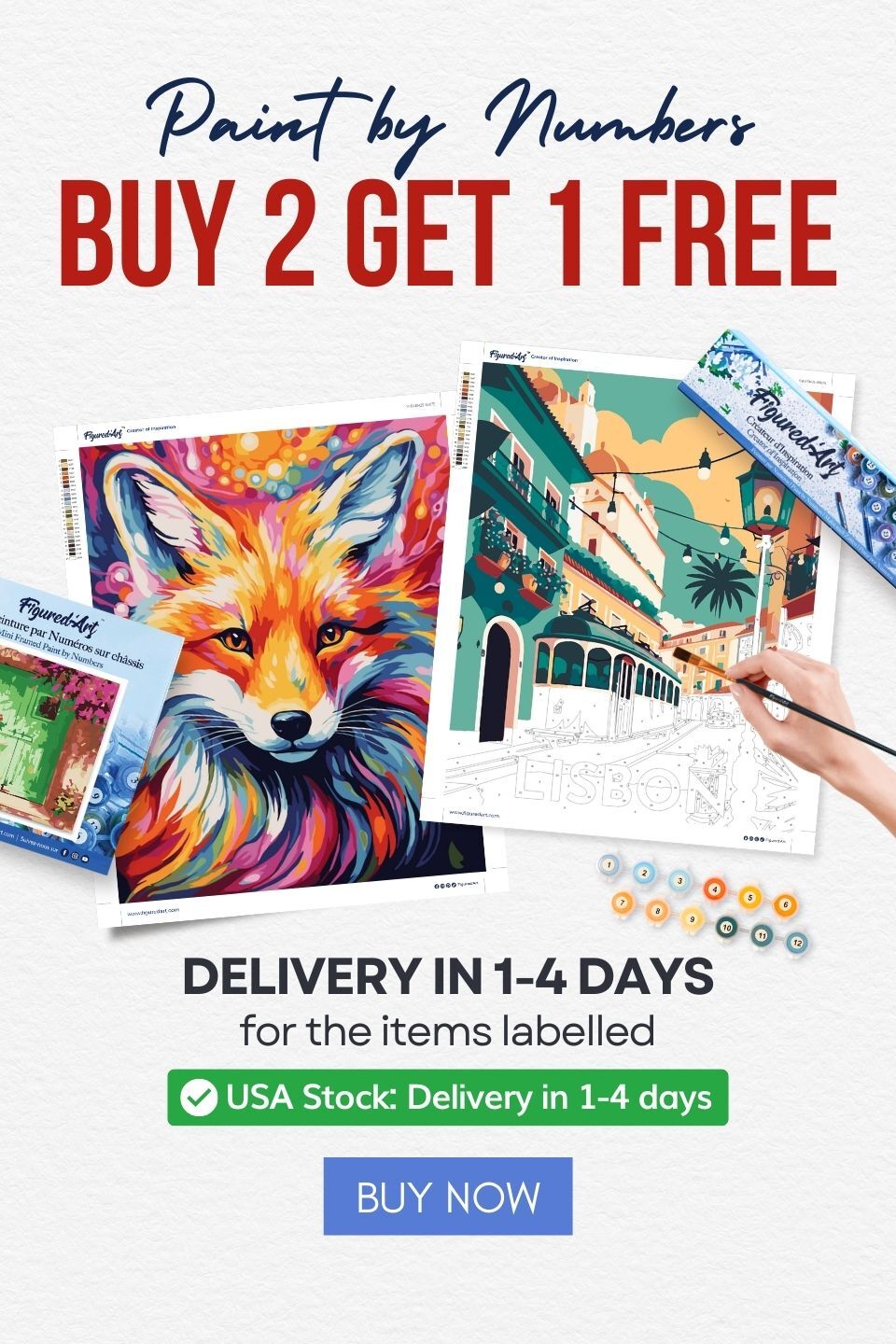 Figured’Art specializes in DIY paint by numbers kits for adults, crafted in our own factory. You can choose from an extensive collection of over 3,000 designs, with canvas sizes ranging from 16"x20" up to 36"x47" if you like larger artworks. Experience the quality that has earned us more than 7,000 5-star reviews from satisfied customers!