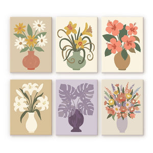 Mini Paint by numbers 6"x8" (6 pieces) - Floral Vases