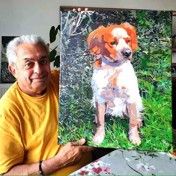 We love to have our customers excited on their new art projects! We offer customized paint by number kits based on your own photos so you can enjoy painting your playful dog in the park, or a family portrait. Completely up to you, just send us your photo, we'll take care of the rest.