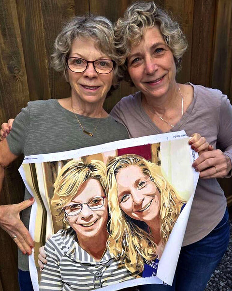 I created this PBN painting from a photo taken of my sisters some 10 years ago. Both of them are happily retired and I presented the finished painting to the latest retiree. She was thrilled with the gift as was I. It was a labor of love for me.