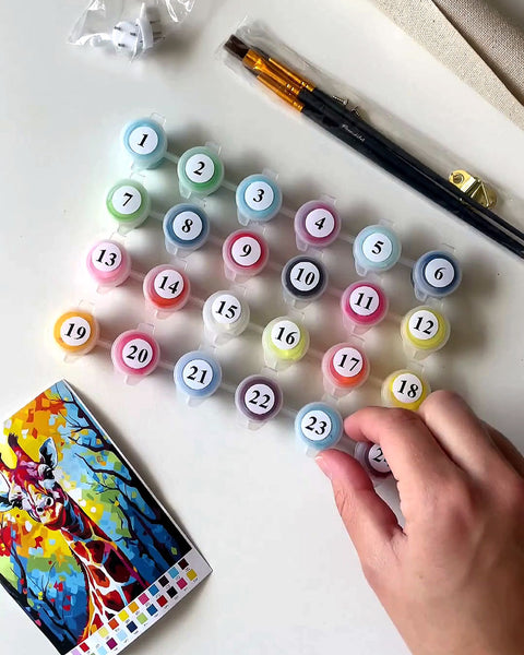 Paint the numbered areas on the canvas by matching with the numbers of your individual paint pots.