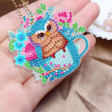 5D Diamond Painting Keychain Blue Owls 6 Pieces