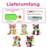 5D Diamond Painting Keychain with Cats 5 Pieces