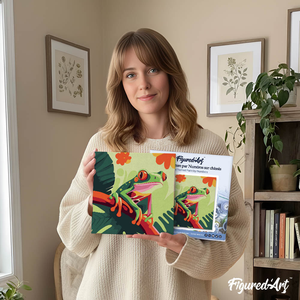 Mini Paint by numbers 8"x8" framed - Tropical Red-Eyed Tree Frog