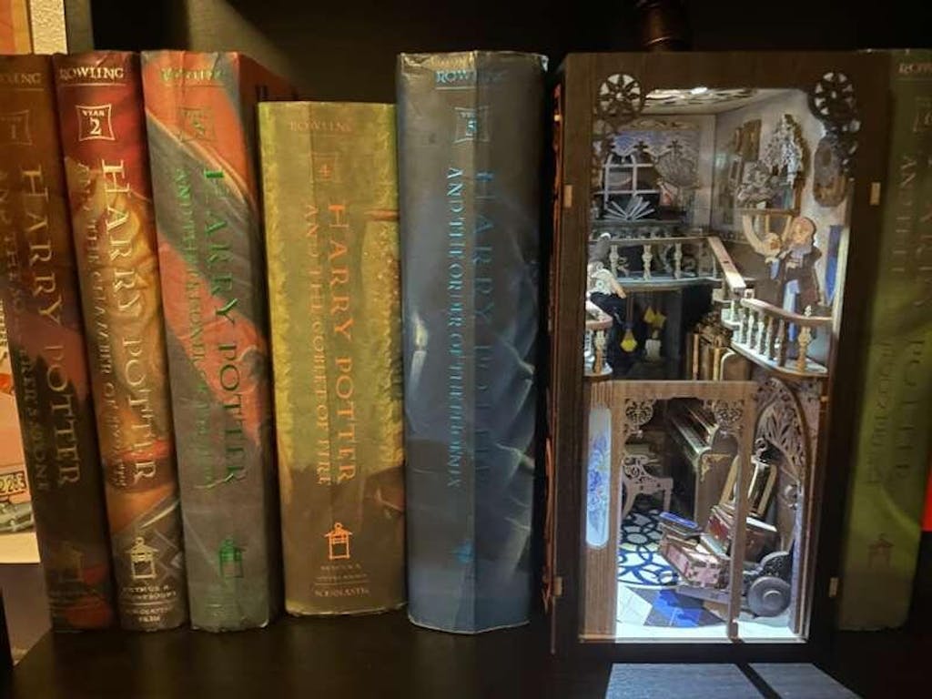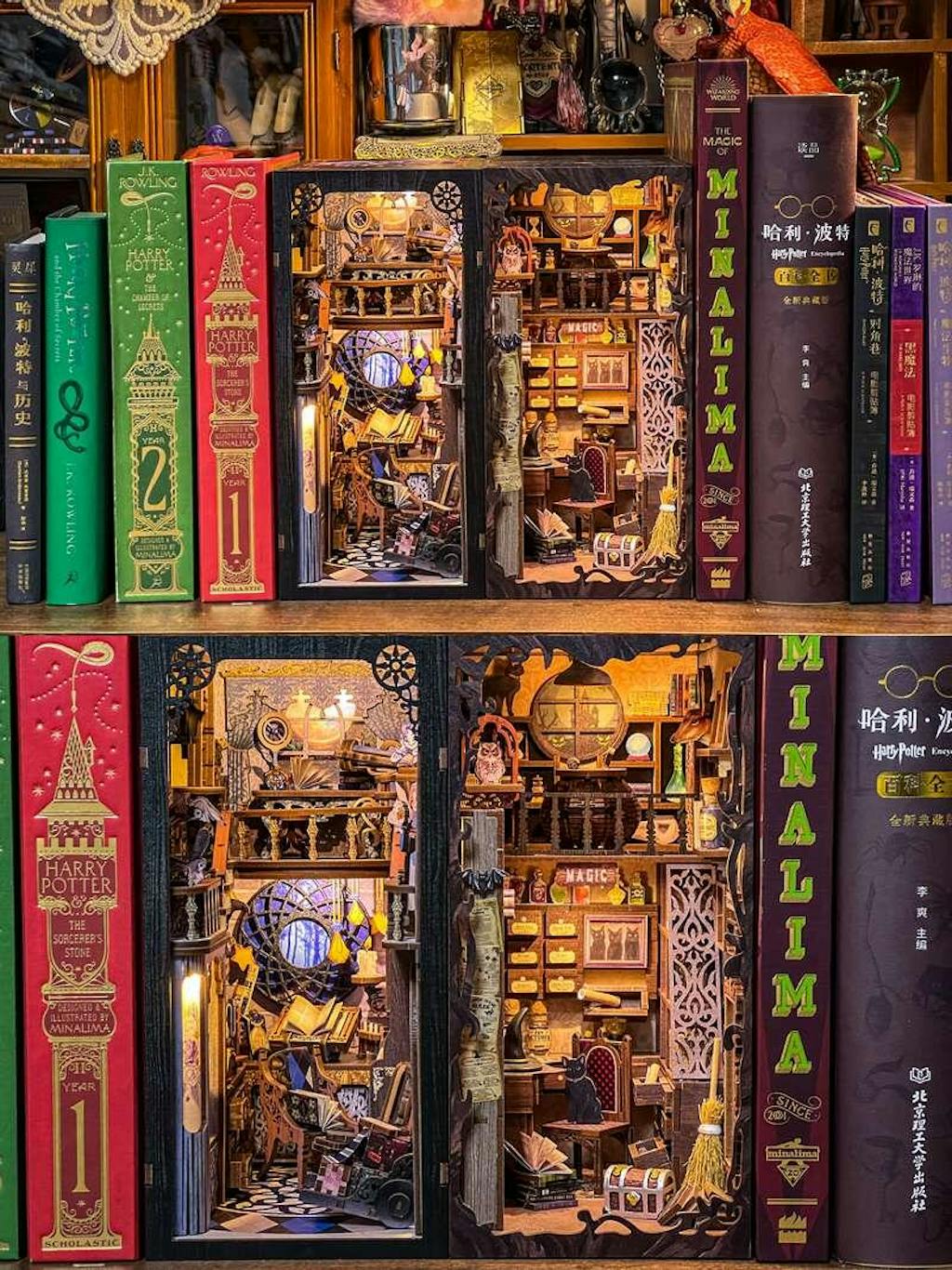 A Book Nook is a miniature diorama designed to fit between books on a bookshelf, but it can also be displayed on any flat surface. These charming DIY kits allow you to create a small, detailed scene that adds a touch of magic and whimsy to your book collection or any room in your home. Each Book Nook tells a unique story, transforming your space into a window to another world. Perfect for book lovers, DIY enthusiasts, and anyone who enjoys creative projects, Book Nooks are a delightful way to showcase your creativity and bring a bit of fantasy into your surroundings.