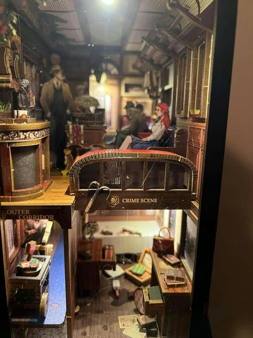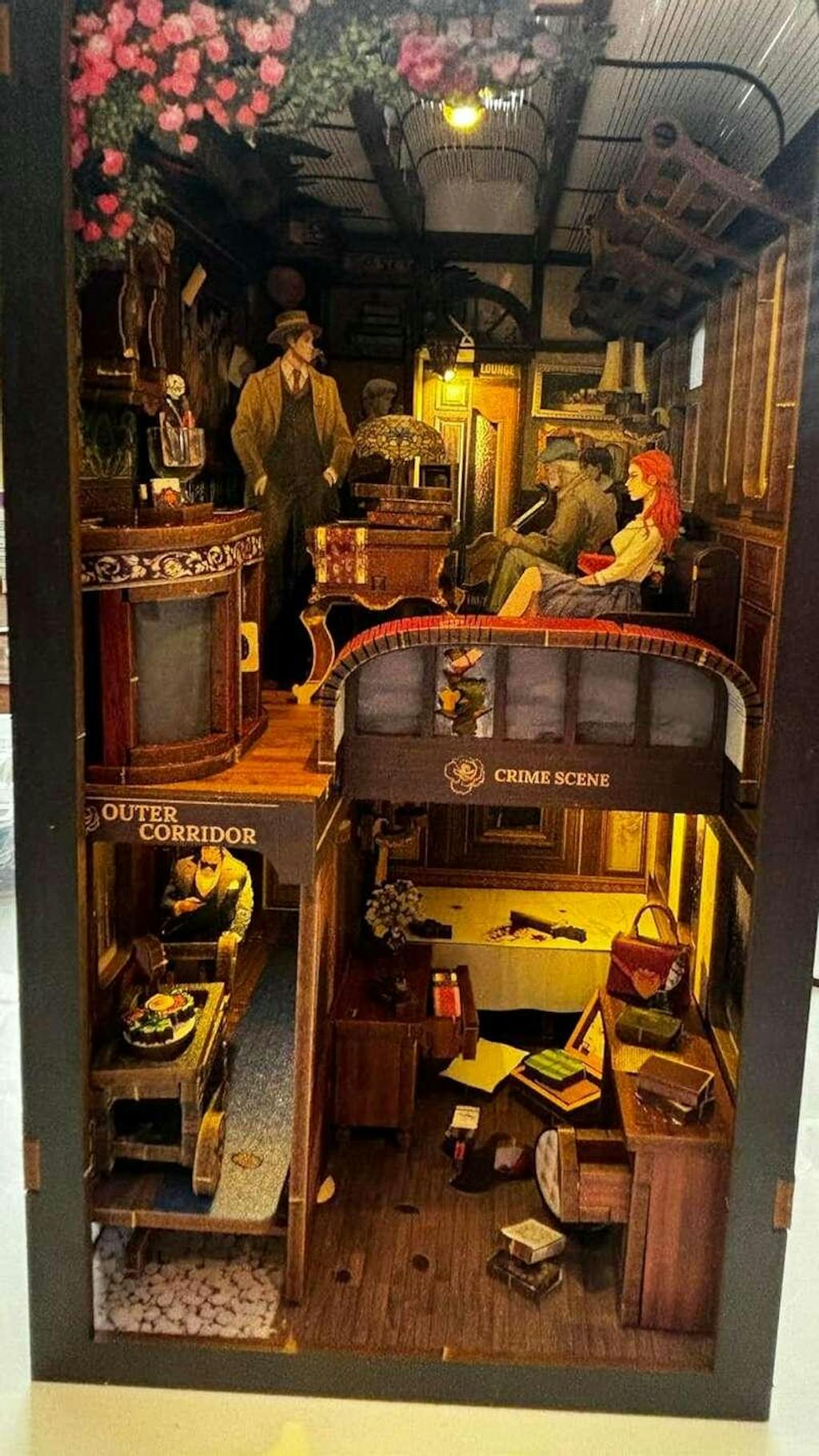 Bring the intrigue of the "Train Mystery" to your bookshelf, desk, or any flat surface with this captivating DIY Book Nook kit. Assemble, decorate, and light up your very own miniature world! Proudly display your creation as a unique bookshelf insert or a standalone miniature scene, perfect for any mystery lover's home.