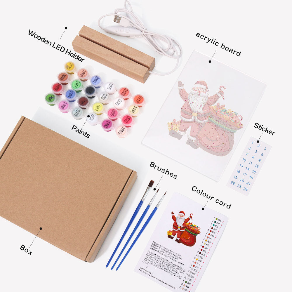 LED Light Display Base Wooden Paint by numbers 6"x8"- Santa Claus 08