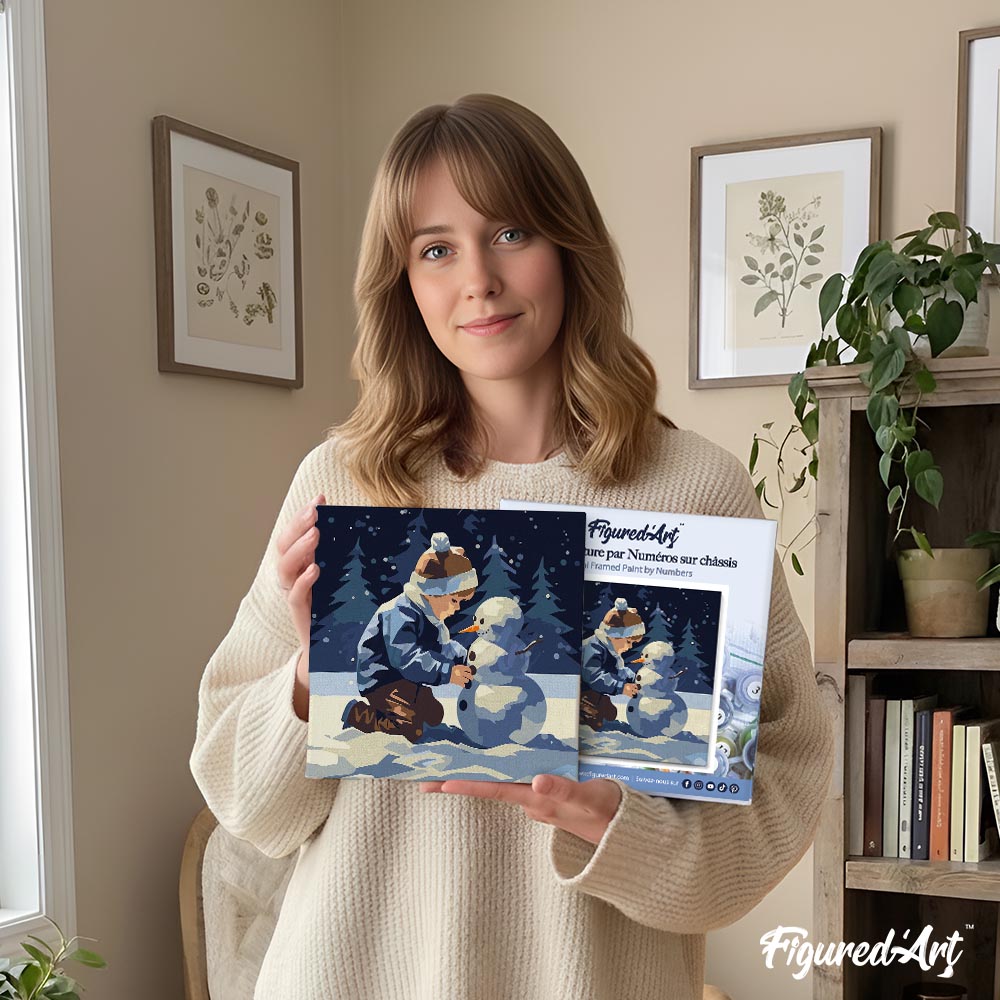 Mini Paint by numbers 8"x8" framed - A Boy and a Snowman