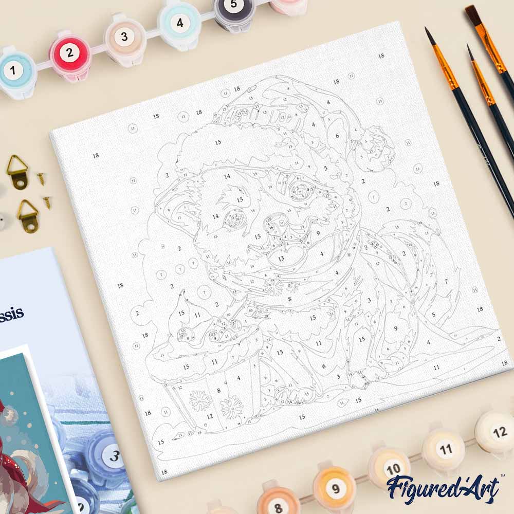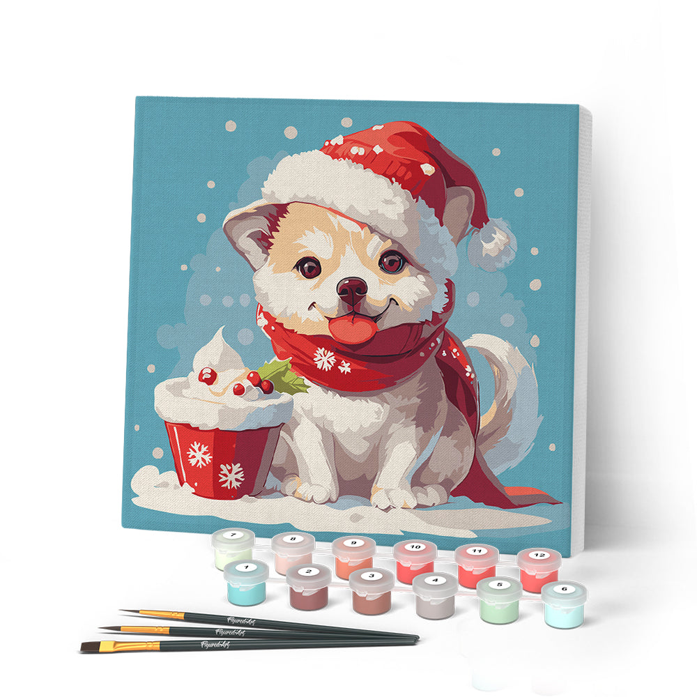 Model: Mini Paint by numbers 8"x8" framed - Christmas Puppy
