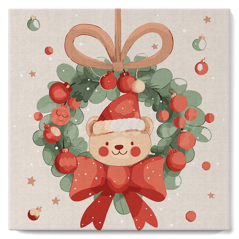 Model: Mini Paint by numbers 8"x8" framed - Christmas Wreath Bear