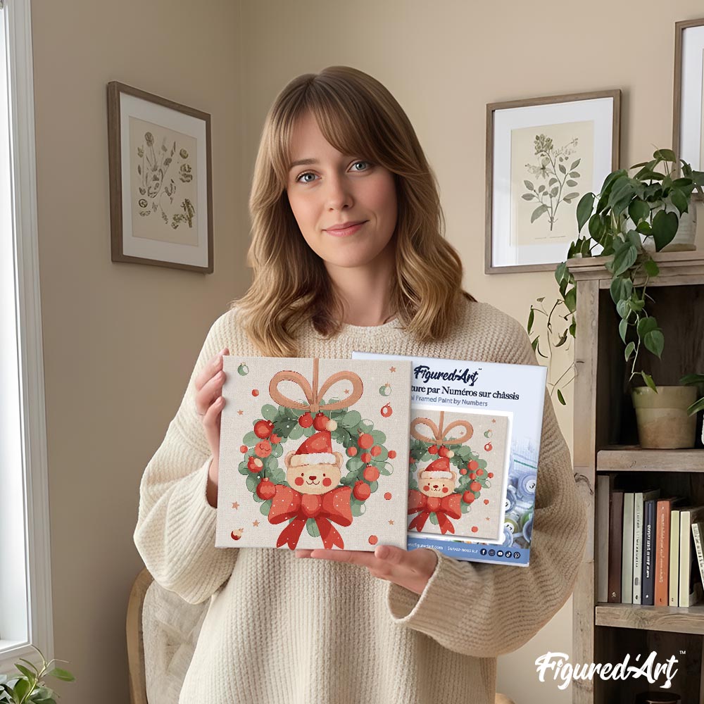 Mini Paint by numbers 8"x8" framed - Christmas Wreath Bear