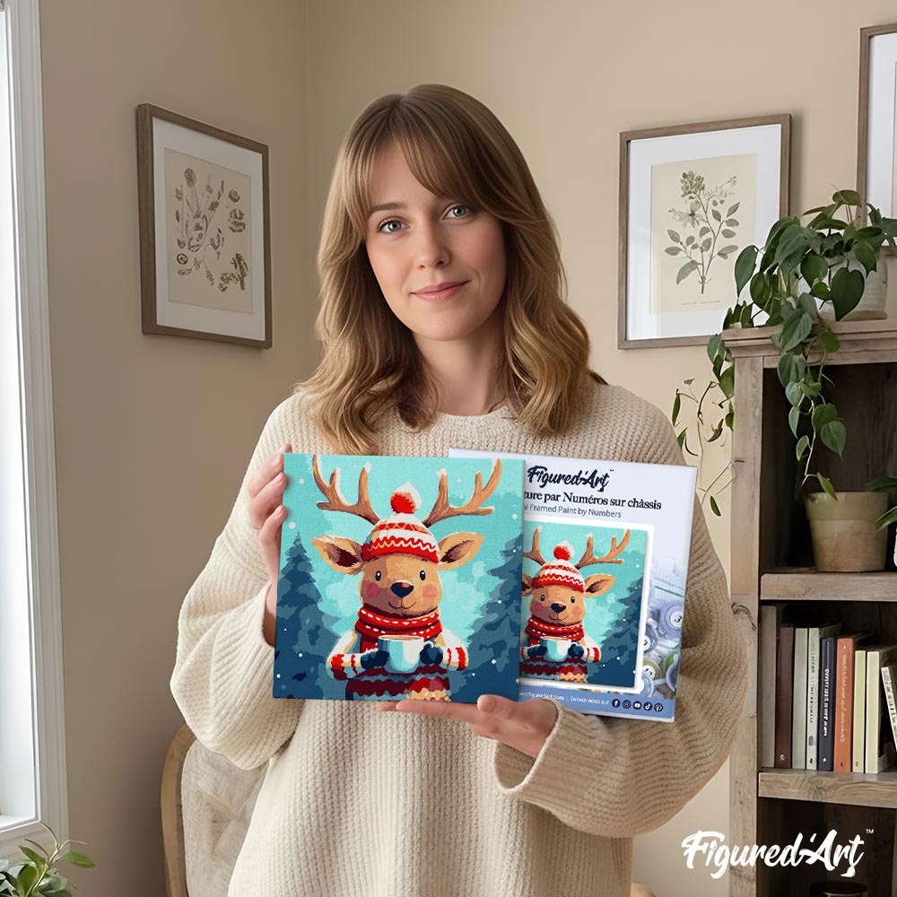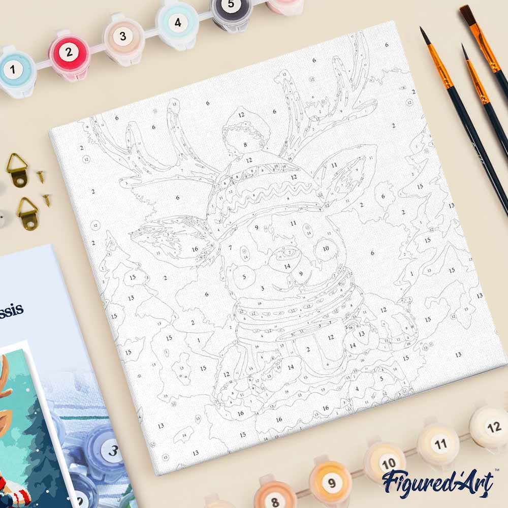 Mini Paint by numbers 8"x8" framed - Cozy Reindeer