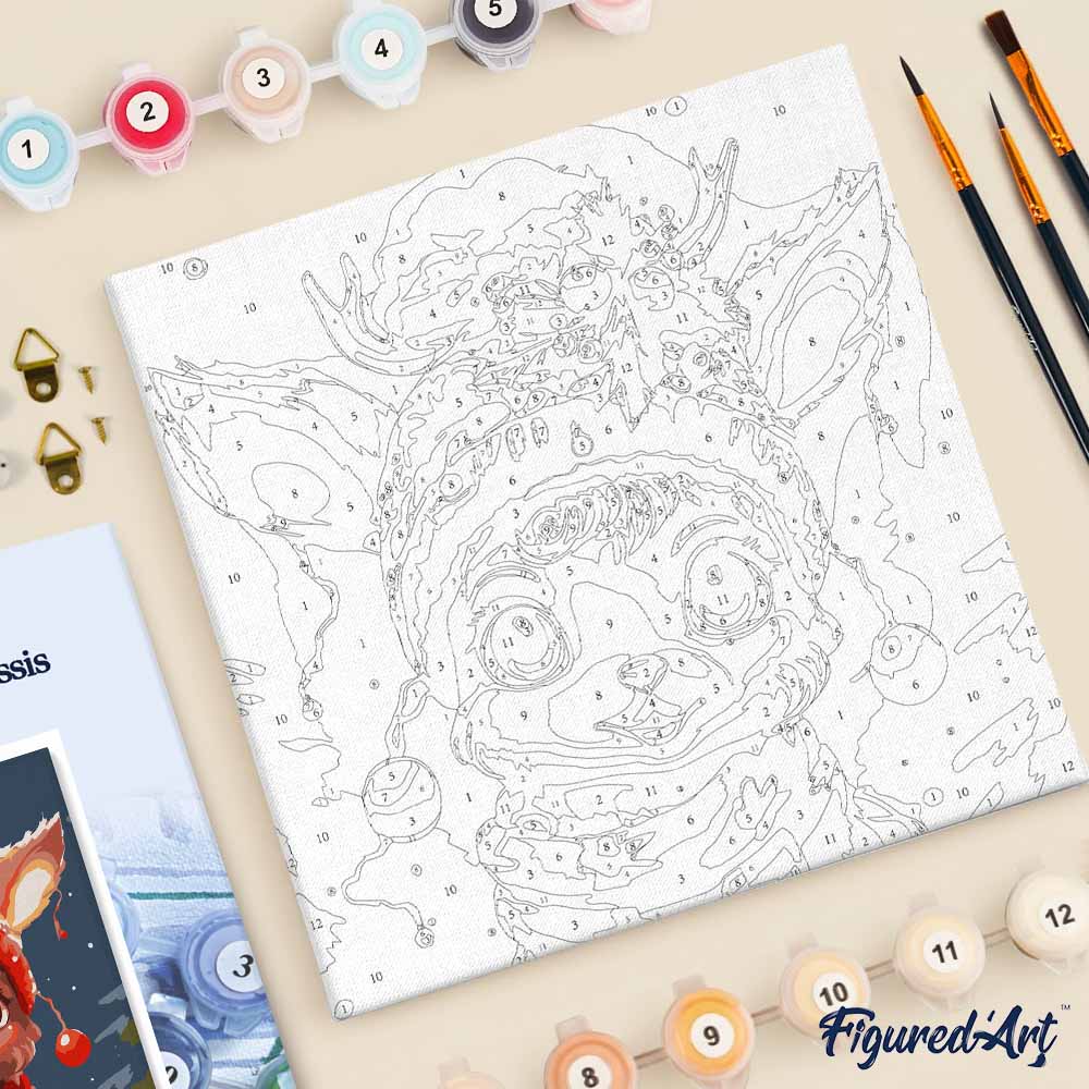 Mini Paint by numbers 8"x8" framed - Cute Fantasy Reindeer