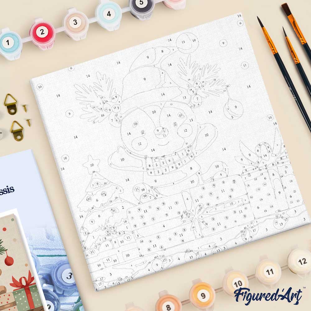 Model: Mini Paint by numbers 8"x8" framed - Holiday Gift Bear