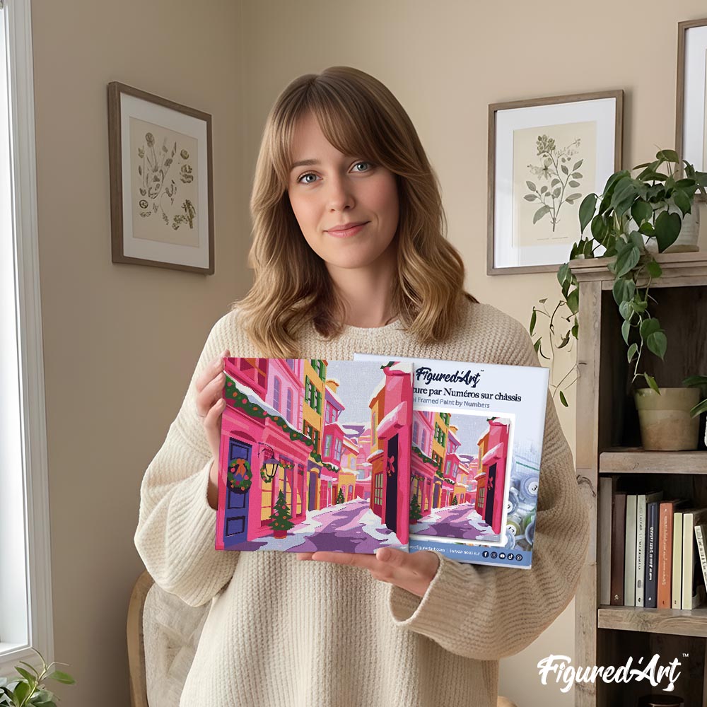Model: Mini Paint by numbers 8"x8" framed - Pink Christmas Alley