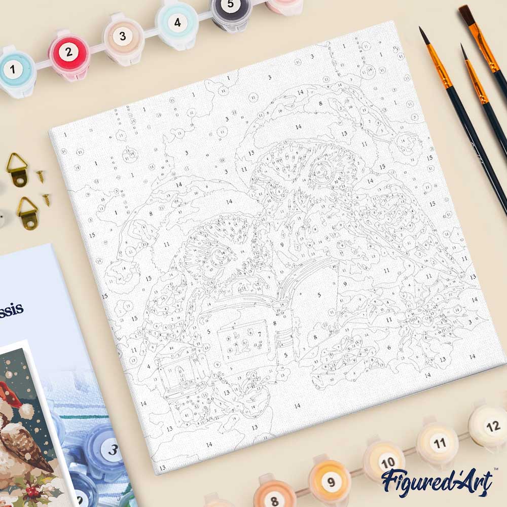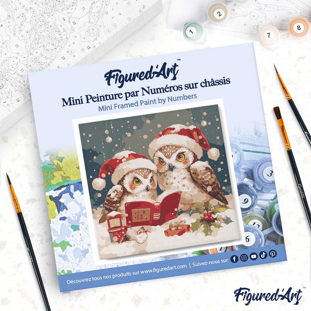 Model: Mini Paint by numbers 8"x8" framed - Santa Owls Reading