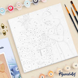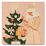Model: Mini Paint by numbers 8"x8" framed - Woman with Christmas Tree