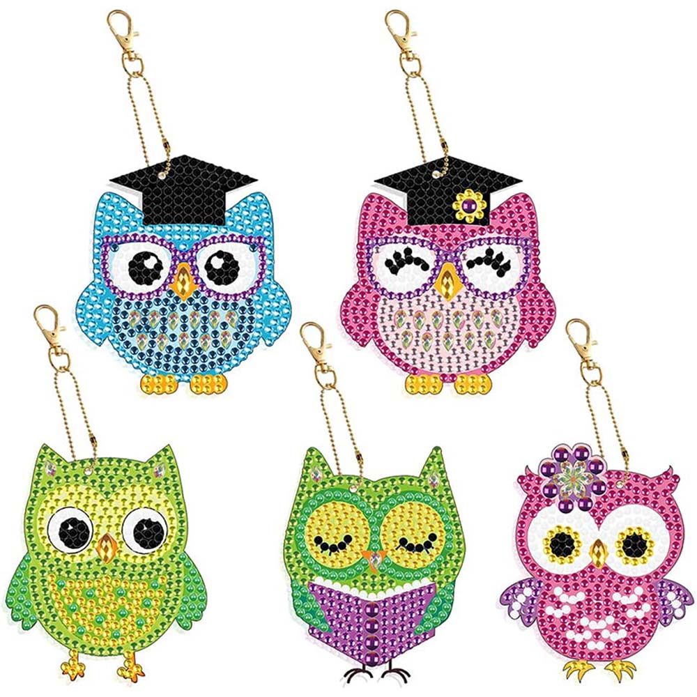 5D Diamond Painting Keychain with Owls 5 Pieces