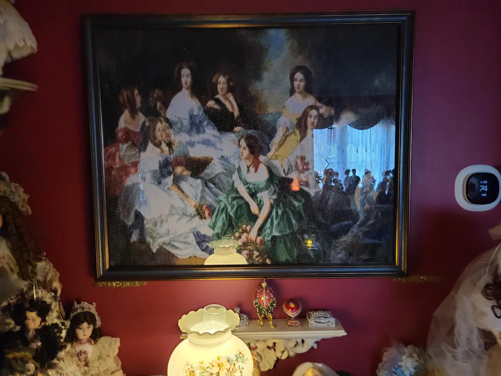 Beautiful rendition of the original. My wife worked on this for about 3 months. Once framed and hung it looked like a real painting from a normal viewing distance