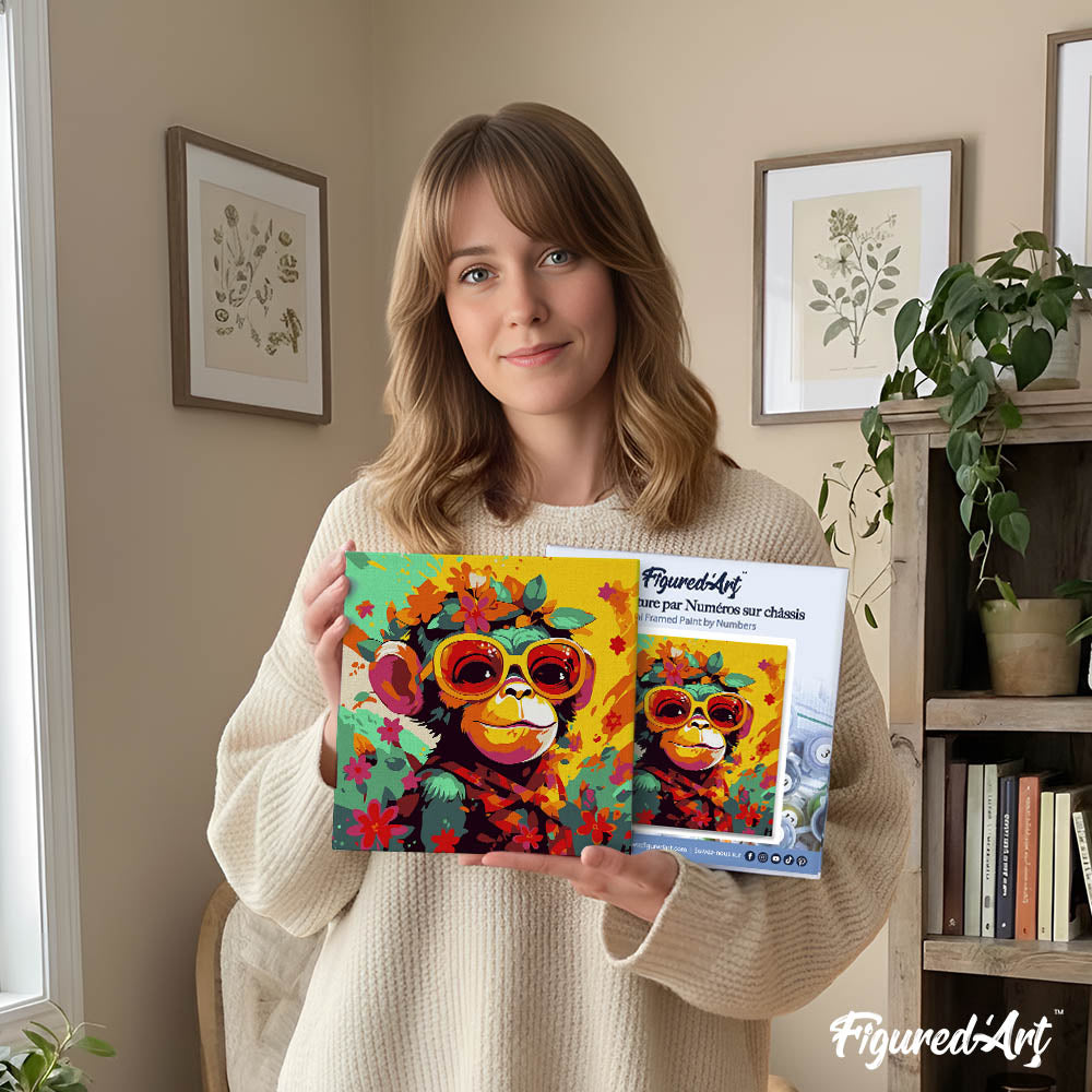 Mini Paint by numbers 8"x8" framed - Fantasy monkey and flowers