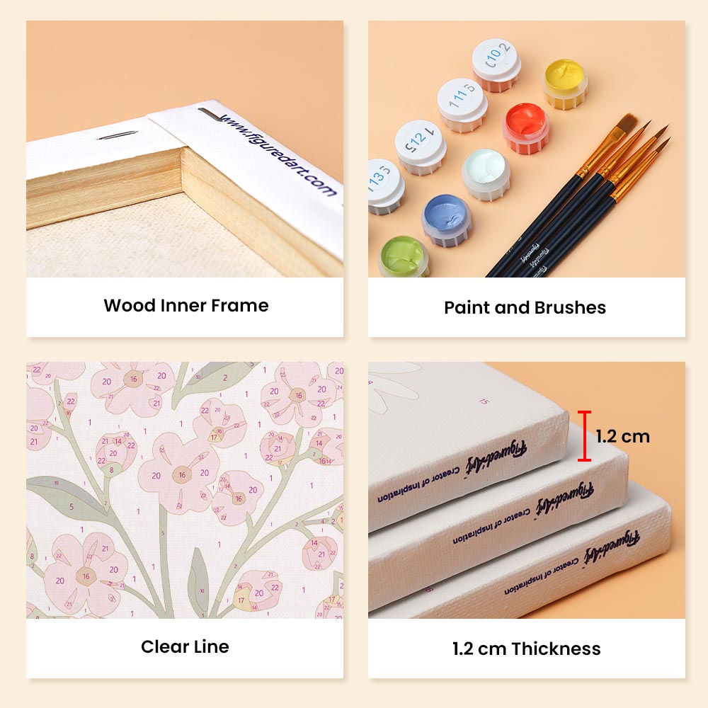 Unleash your creativity with the Figured'Art Mini Paint by Numbers Set, featuring small numbered linen canvases. This relaxing and guided painting by numbers experience is accessible to everyone, perfect to express your artistic side, decorate your home, or gift a creative moment to someone special.