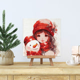 Model: Mini Paint by numbers 8"x8" framed - Pretty Girl and Snowman