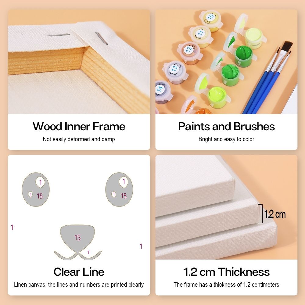 Discover the joy of painting with our Paint by Numbers – 6 Canvas Set | Cute Animal Faces. Each kit includes six themed canvases, pre-mixed acrylic paints, and all the tools you need. Follow the numbered guide to enjoy a relaxing hobby and create beautiful artworks you’ll be proud to display or gift.
