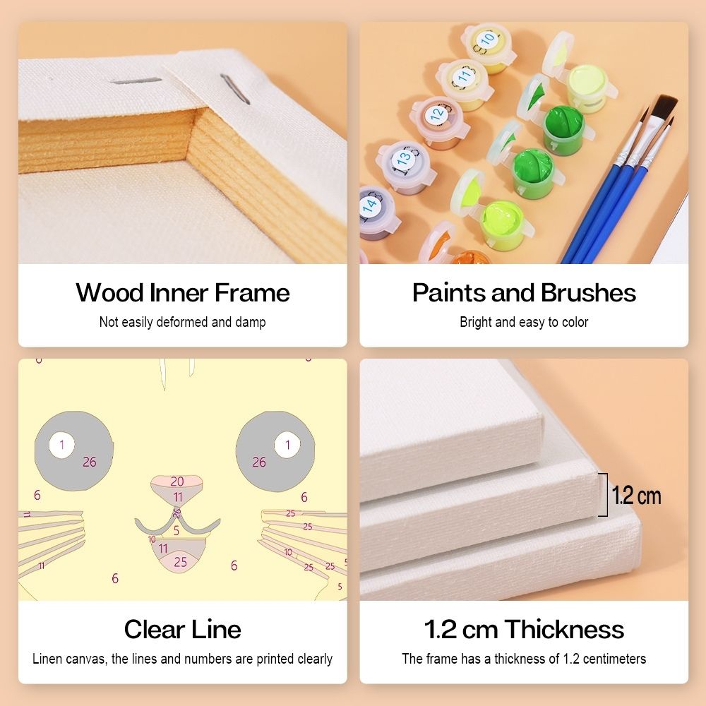 Discover the joy of painting with our Paint by Numbers – 6 Canvas Set | Cute Animal Faces 2. Each kit includes six themed canvases, pre-mixed acrylic paints, and all the tools you need. Follow the numbered guide to enjoy a relaxing hobby and create beautiful artworks you’ll be proud to display or gift.