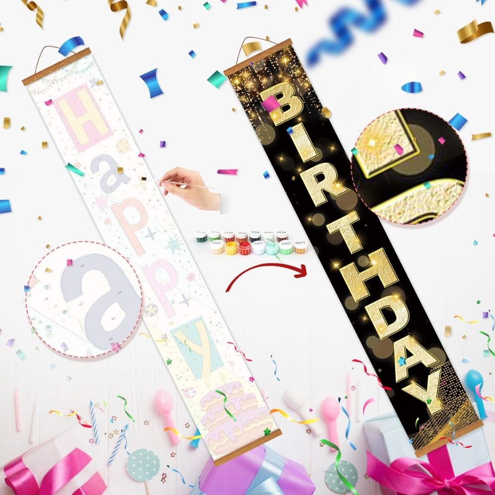 Decorate your entrance in a unique and joyful way with these vibrant birthday themed decorations! The Paint by Numbers Front Door Hanging Banners - Colorful Garland set brings color, fun, and personality to your party décor. Each painting kit includes two beautifully patterned banners (7.9" x 47.2"/ 20×120cm), perfect for brightening entryways, doors and walls. Ideal for indoor and outdoor spaces, these festive banners instantly add charm to any home, yard, or celebration area.