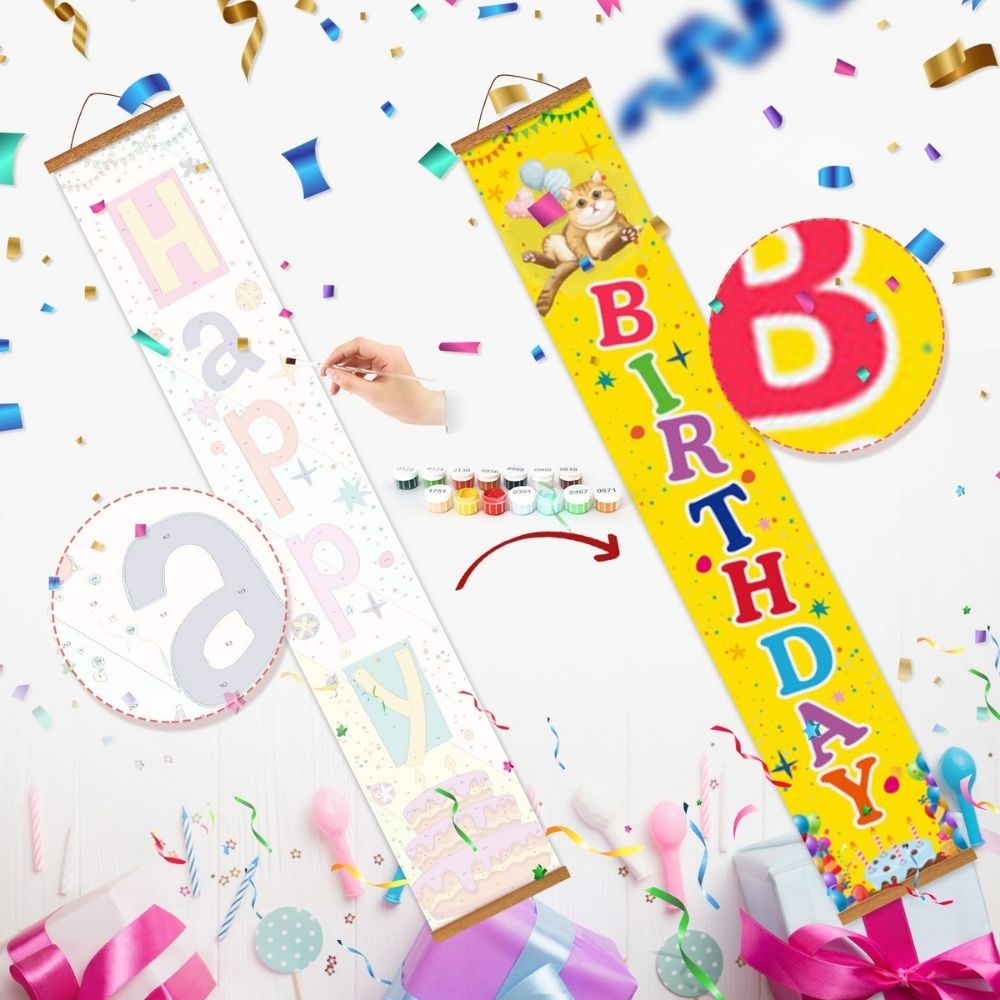 Decorate your entrance in a unique and joyful way with these vibrant birthday themed decorations! The Paint by Numbers Front Door Hanging Banners - Happy Flags set brings color, fun, and personality to your party décor. Each painting kit includes two beautifully patterned banners (7.9" x 47.2"/ 20×120cm), perfect for brightening entryways, doors and walls. Ideal for indoor and outdoor spaces, these festive banners instantly add charm to any home, yard, or celebration area.