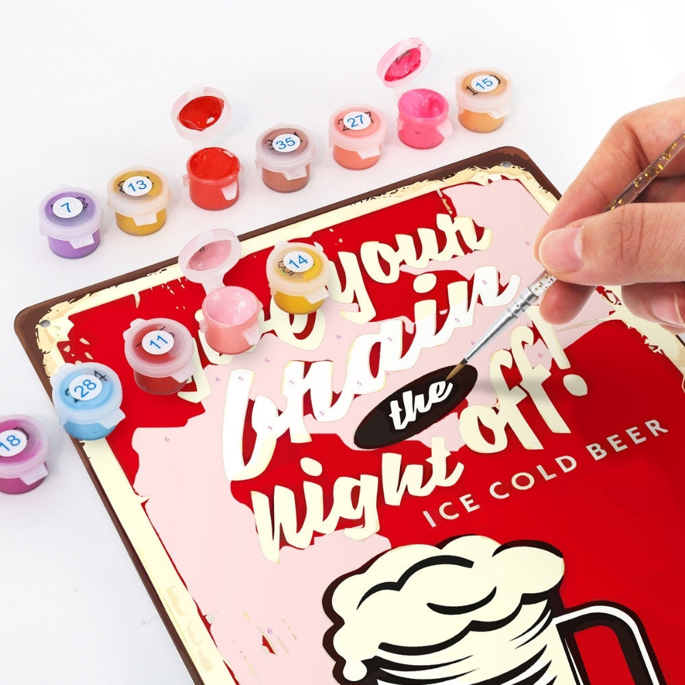 Bring a touch of vintage pub charm to your space with this beer-themed paint by numbers for adults from Figured'Art. Each painting by numbers metal poster features a crisp, retro design that evokes the cozy atmosphere of a classic pub. It's perfect for beer lovers and hobbycraft enthusiasts alike. This diy kit provides a fun and relaxing way to create your own pub-style wall art. Once your artwork is complete, you can easily hang your poster using the included hemp rope or choose to mount it with screws (not included). Ideal for decorating bars, pubs, garages, kitchens, or any corner where beer lovers gather. Enjoy a creative hobby while adding a touch of personality to your space. 🍺