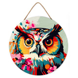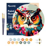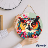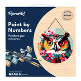 Paint by numbers on Wood Slice - Fantasy owl with flowers