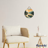 Paint by numbers on Wood Slice - Mountain Lake with Canoe