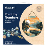 Model: Paint by numbers on Wood Slice - Mountain Lake with Canoe