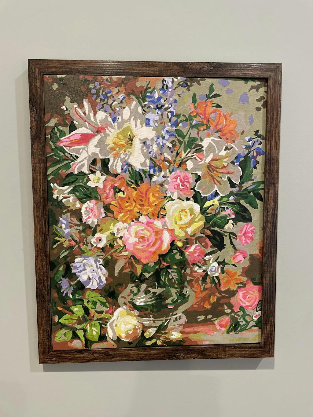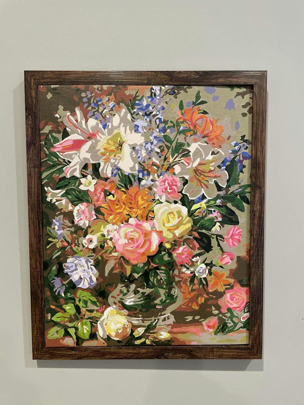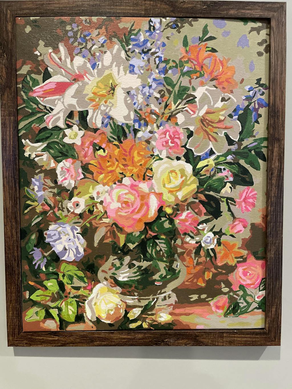 Full kit of paint by numbers with rolled canvas (no fold) and a do-it-yourself wooden frame.
