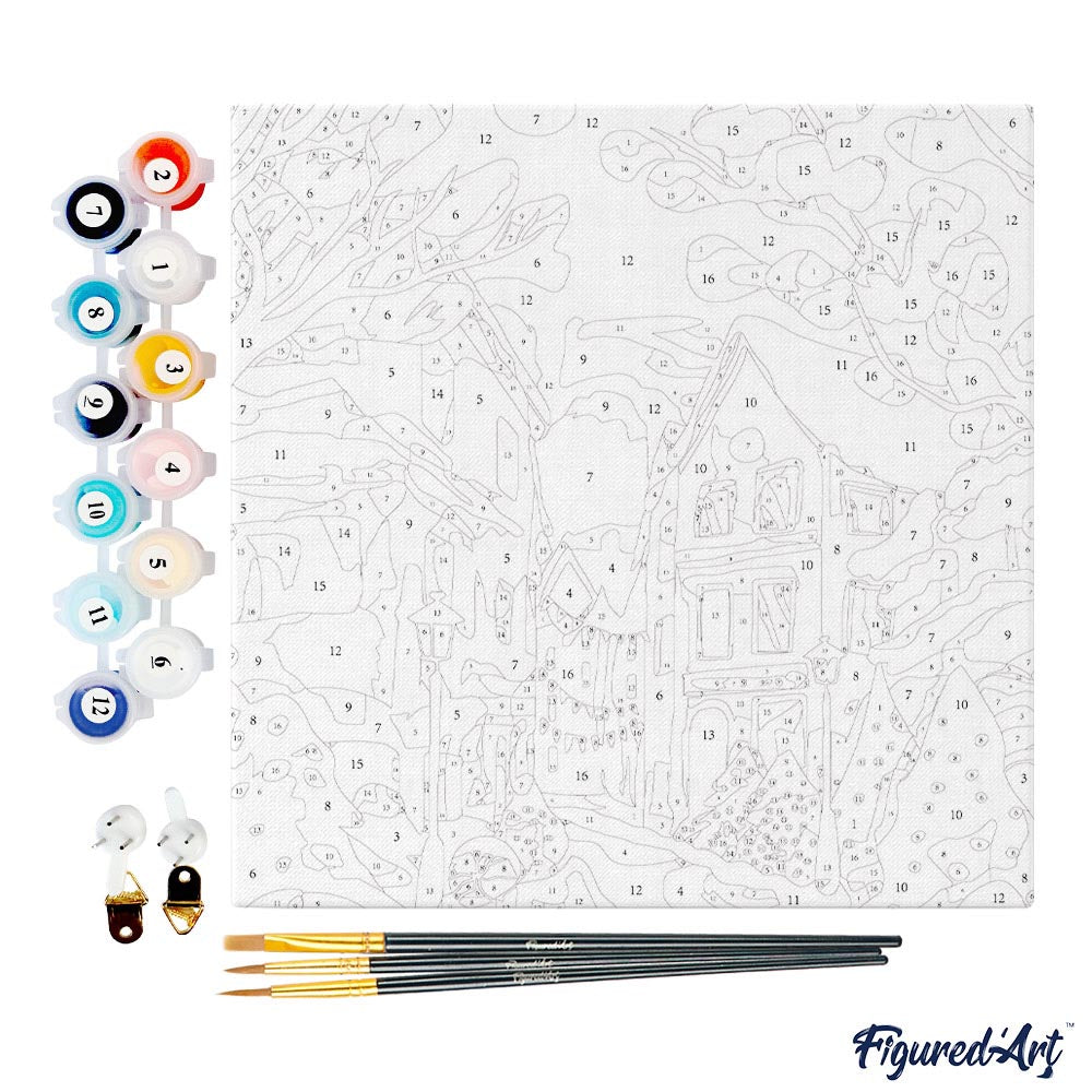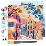 Model: Mini Paint by numbers 8"x8" framed - Lovely Snowy Town