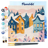 Mini Paint by numbers 8"x8" framed - Lovely Winter Village