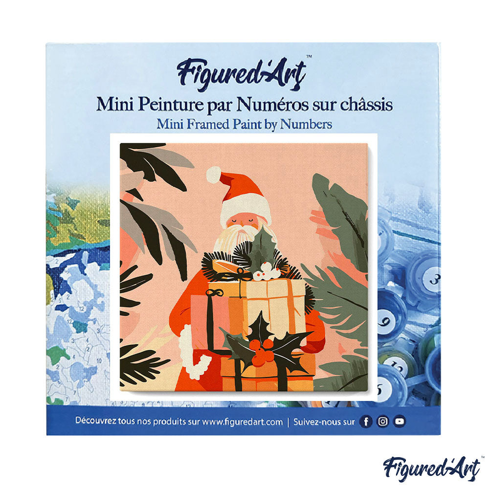 Model: Mini Paint by numbers 8"x8" framed - Santa with Gifts