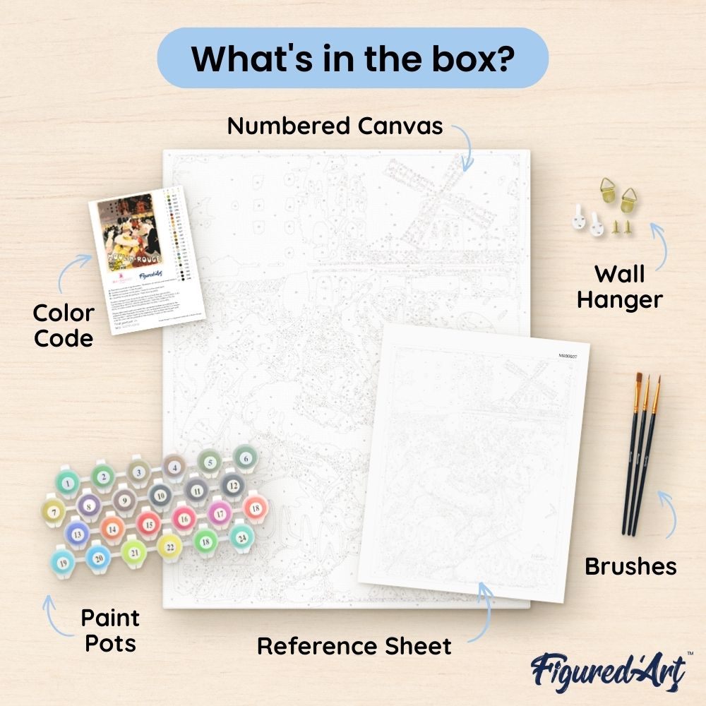 This paint by numbers kit contains all the necessary materials to create your artwork: