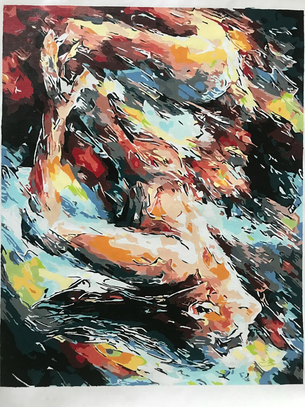 2) You will receive a ready-to-use kit containing the canvas with the numbered areas, the numbered pots of paints, paint brushes and a picture of the expected result to guide you. Let the journey begin!