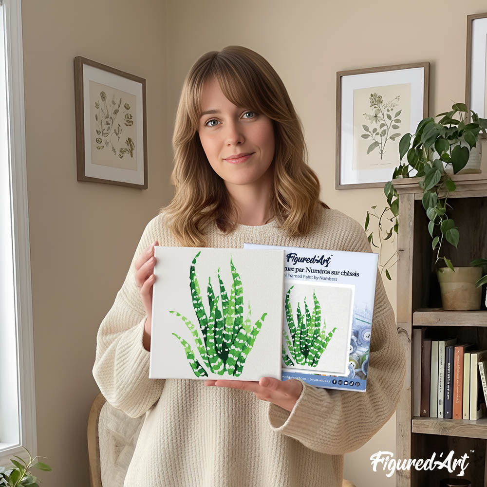 Mini Paint by numbers 8"x8" framed - Abstract Aloe Vera Plant