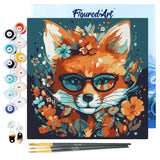 Mini Paint by numbers 8"x8" framed - Fantasy fox and flowers