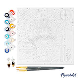 2) You will receive a ready-to-use kit containing the canvas with the numbered areas, the numbered pots of paints, paint brushes and a picture of the expected result to guide you. Let the journey begin!