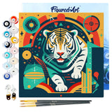 Mini Paint by numbers 8"x8" framed - Tiger Art-Deco Inspired Abstract