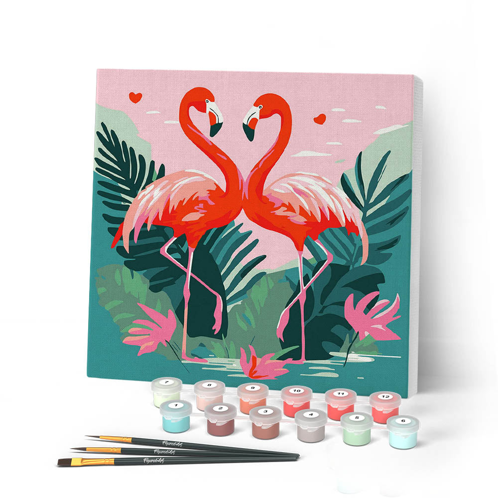 Mini Paint by numbers 8"x8" framed - Tropical Flamingos