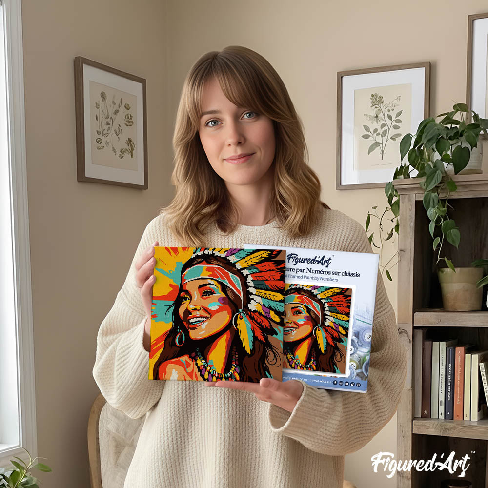 Mini Paint by numbers 8"x8" framed - Native Elegance Lady Pop Art