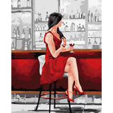 Woman in Red with Wine Glass