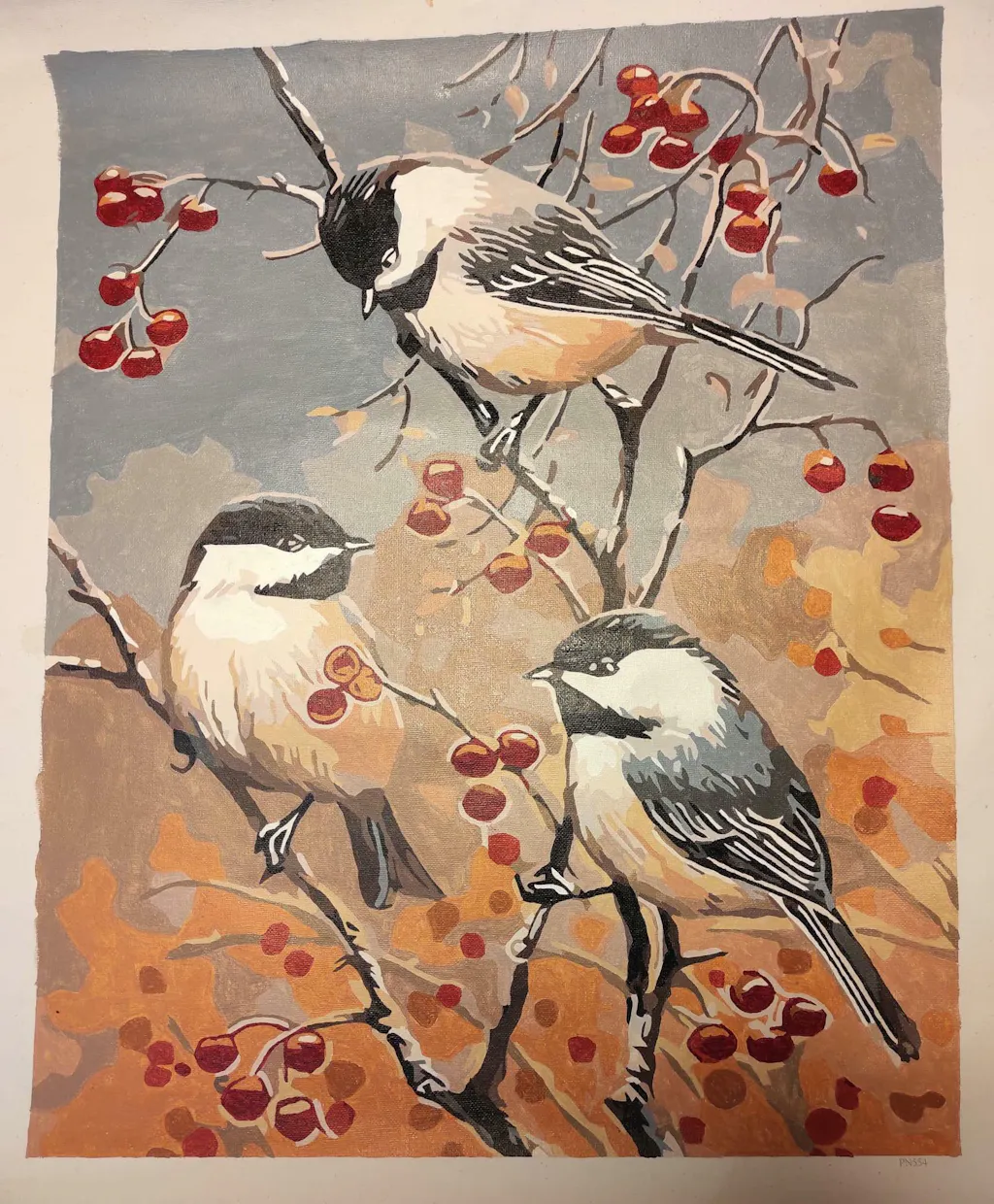 3) Paint each number on the canvas with it’s corresponding paint colour.