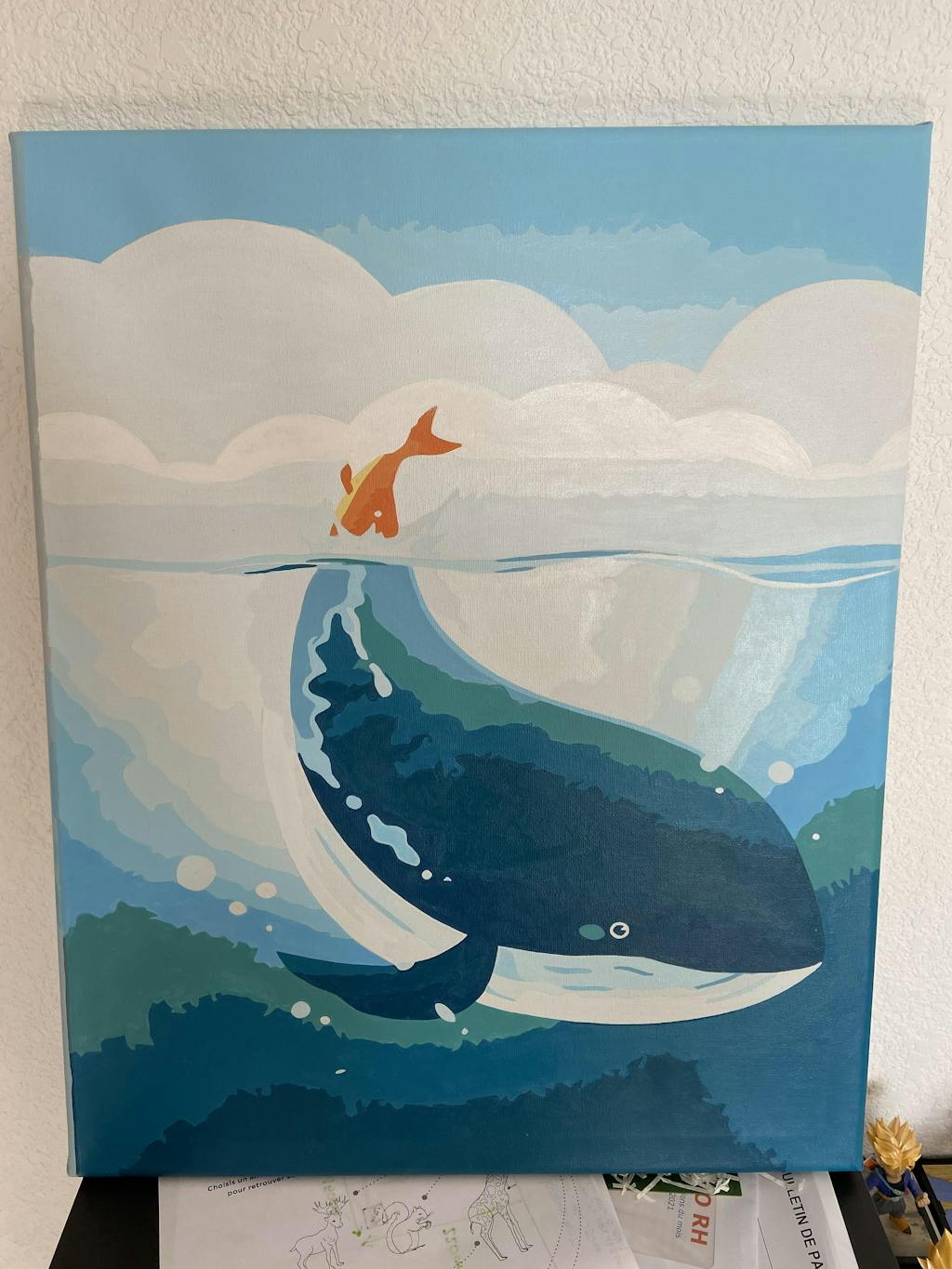 2) You will receive a ready-to-use kit containing the canvas with the numbered areas, the numbered pots of paints, paint brushes and a picture of the expected result to guide you. Let the journey begin!