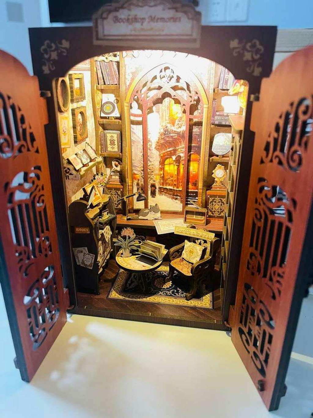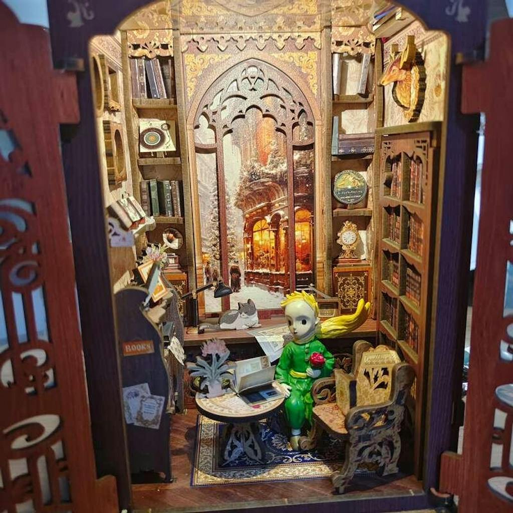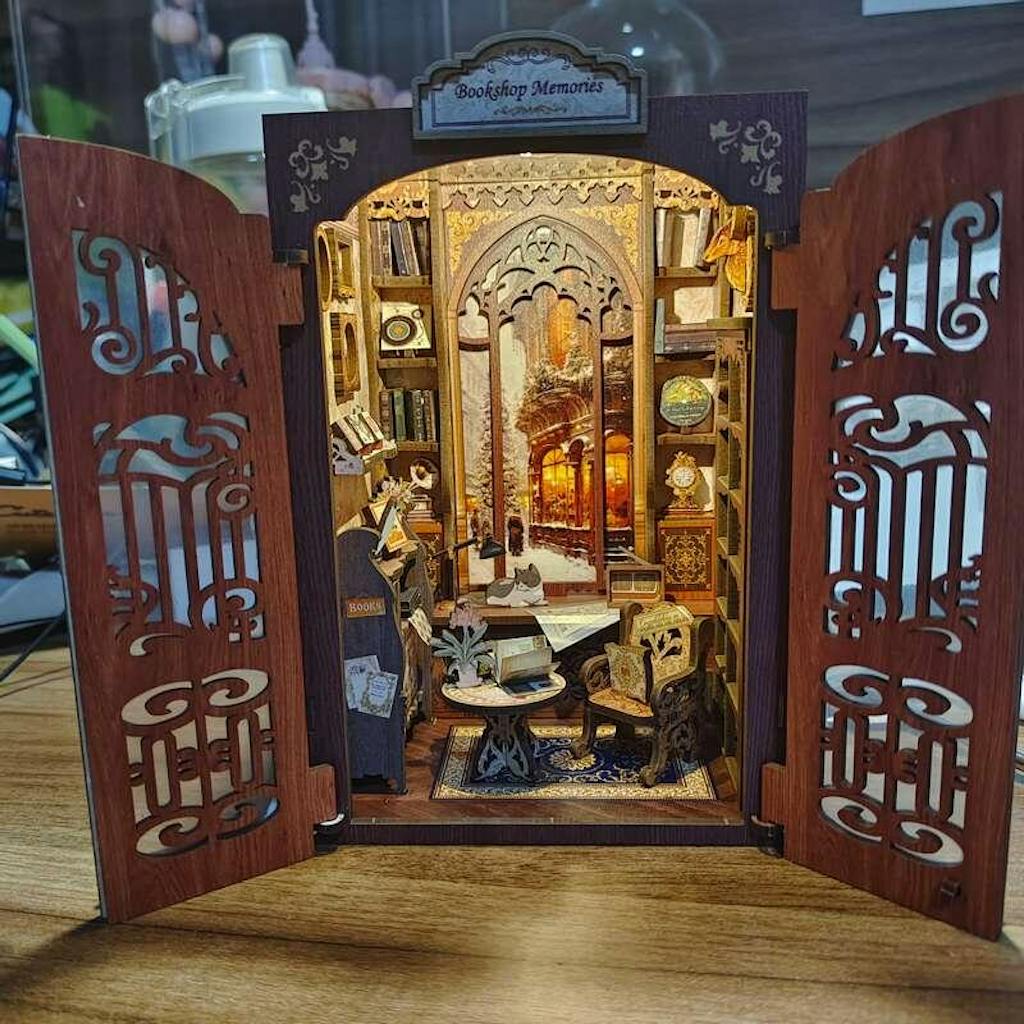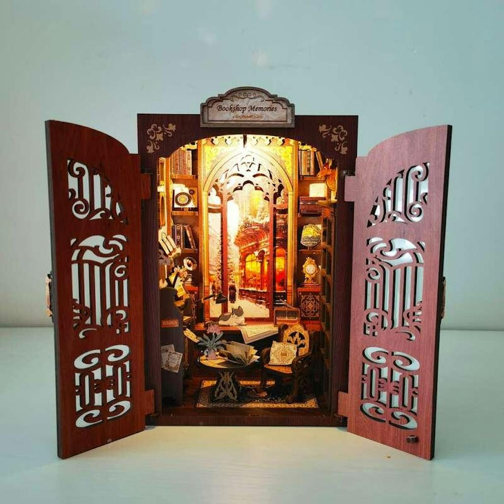 Bring the charm and nostalgia of Bookshop Memories to your bookshelf, desk, or any flat surface with this delightful DIY Book Nook kit. Assemble, decorate, and light up your miniature world! Display it as a unique bookshelf insert or a standalone vintage scene.